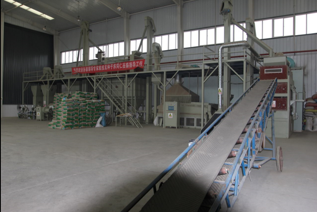 自動包裝機                  種子加工中心                   成品種子出庫